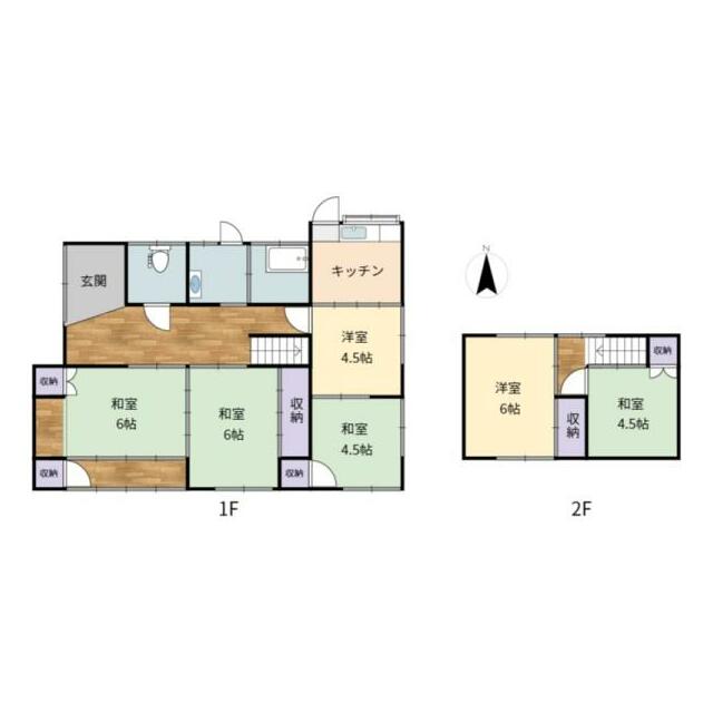 | 間取り(内訳) | 6K(K3和室6和室6洋室4.5和室4.5洋室6和室4.5) | 建物面積 | 105.05㎡ |